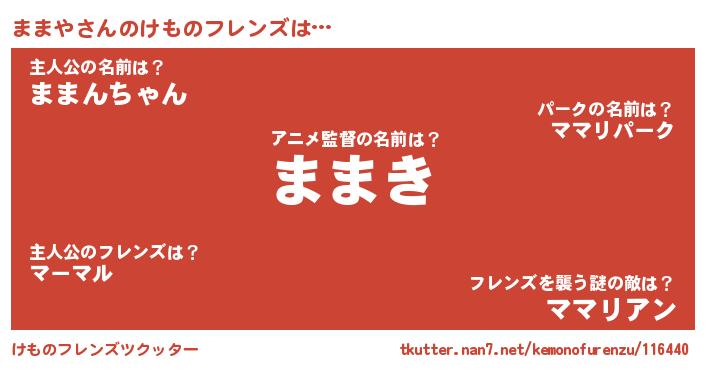 | 2回繰り返すあだ名 | 『ちまちま』『ぬれぬれ』『まままま』 |