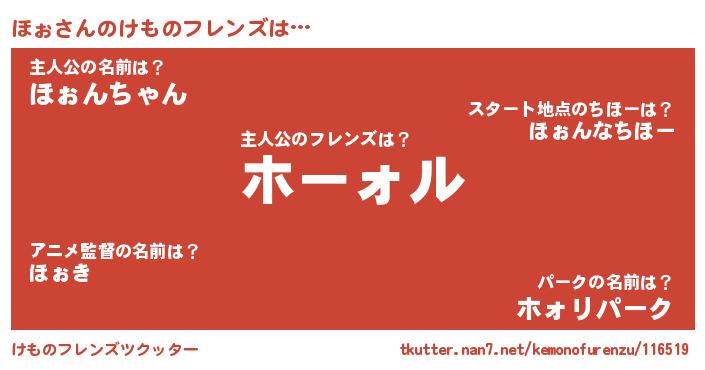 | 2回繰り返すあだ名 | 『くちゅくちゅ』『ほぉほぉ』 |