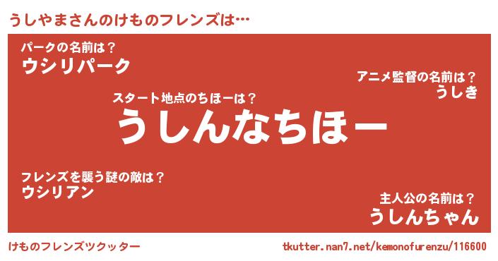 | ヘコむあだ名 | 『つくし』『うしにー』『うしっぺ』 |