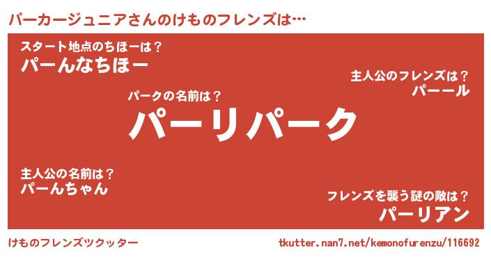 | 意味不明あだ名 | 『住所不定無職パーカージュニア(5歳)』 |