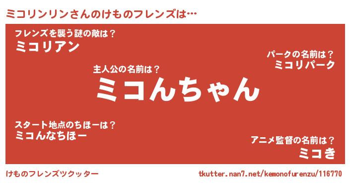| ヒーロー風カッコイイあだ名 | 『スーパーミコリンリン』『炎刃騎士ミコ』 |