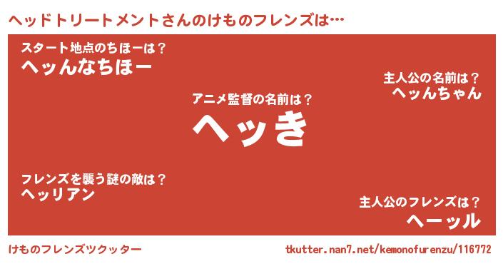 | 萌えアニメ | 主人公(ヘッドトリートメント)のあだ名『 ヘッっち』 |