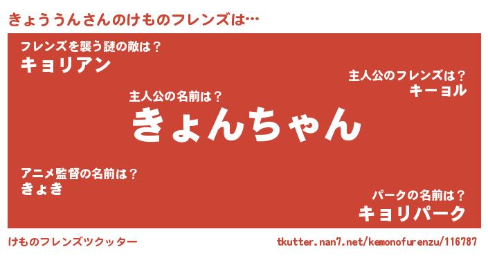 | 意味不明あだ名 | 『ペロリンきょううん』『自称きょううん』 |