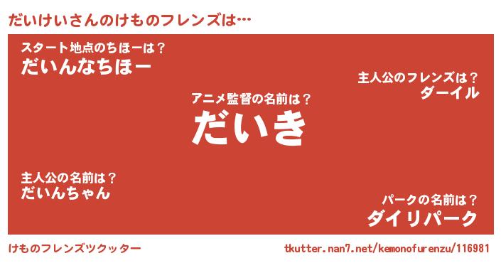 | ヒーロー風カッコイイあだ名 | 『幻影騎士ダイ』『ウルトラだいけいマン』 |
