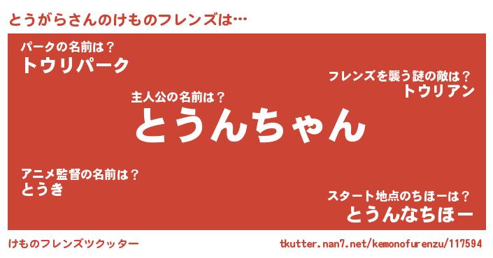 | 2回繰り返すあだ名 | 『とうとう』『もやもや』『ととうう』 |