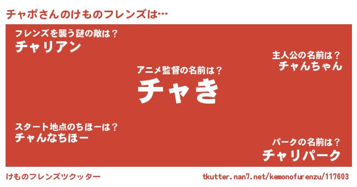 | 意味不明あだ名 | 『しいたけ科チャポ属』『自称チャポ』 |