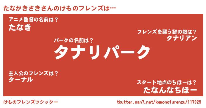 | ヒーロー風カッコイイあだ名 | 『究極戦士タナカキサキ』『幻影騎士タナ』 |