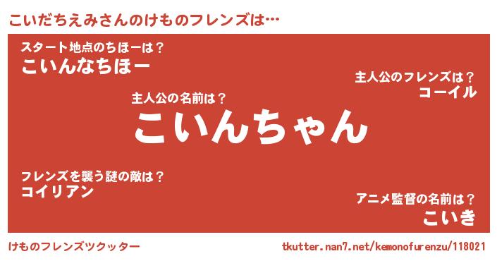 | 2回繰り返すあだ名 | 『こいこい』『わなわな』『ここいい』 |