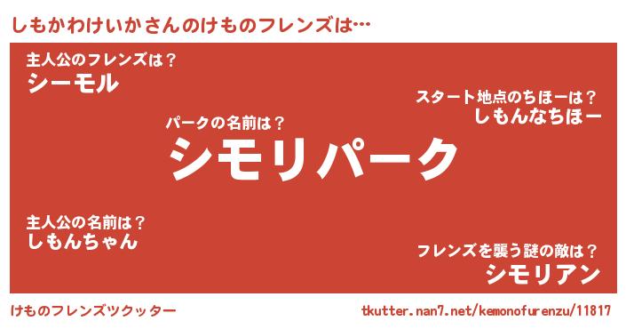 | 意味不明あだ名 | 『自称しもかわけいか』 |