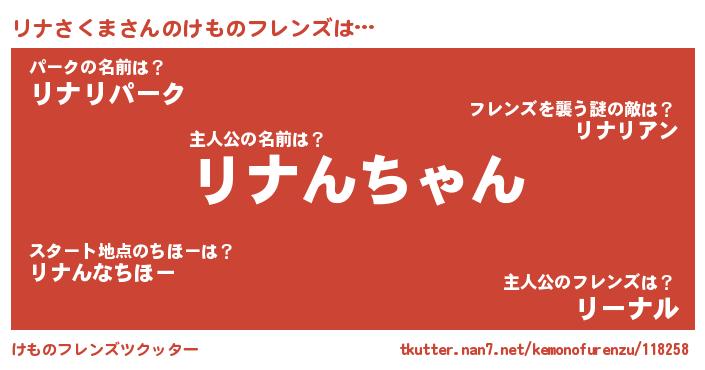 | 意味不明あだ名 | 『ペロリンリナさくま』『自称リナさくま』 |
