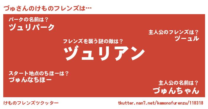 | ヒーロー風カッコイイあだ名 | 『慈愛の使者づゅ』『仮面ヅュダー』 |