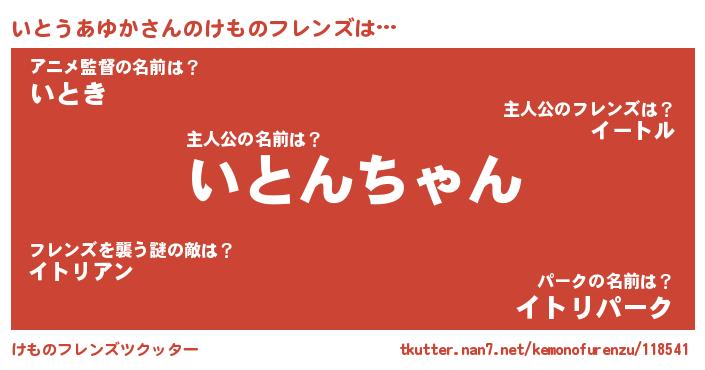 | ポケモン風あだ名 | 『イトチュウ』『ヒイトウアユカ』 |