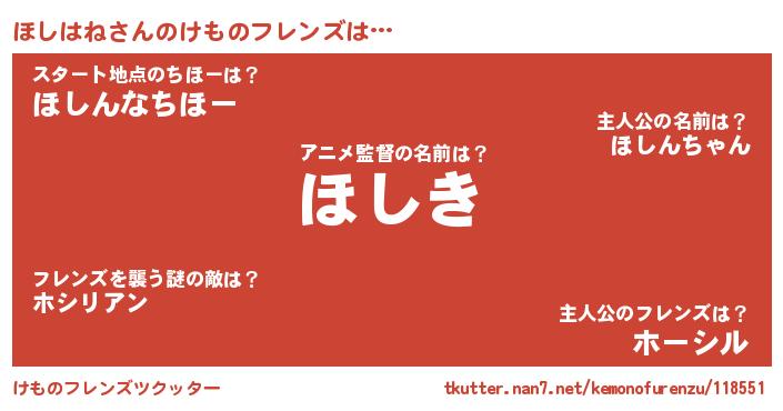 | ヒーロー風カッコイイあだ名 | 『炎刃騎士ホシ』『ウルトラほしはねマン』 |