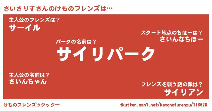 | 意味不明あだ名 | 『自称さいさりす』『永久保存さいさりす』 |