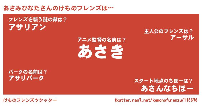 | ポケモン風あだ名 | 『ヒアサミヒナタ』『アックウザ』 |