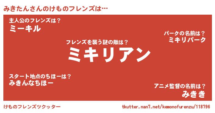| 男性向けラノベタイトル風あだ名 | 『おまえをオタクにしてやるから、俺をみきたんにしてくれ! 』 |