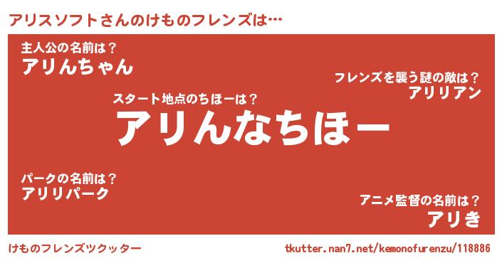 | 恥ずかしいあだ名 | 『アリっちょ』『プリティーアリスソフト』 |