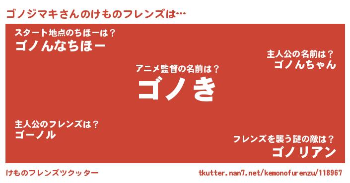 | ヒーロー風カッコイイあだ名 | 『仮面ゴノダー』『銀牙騎士ゴノ』 |