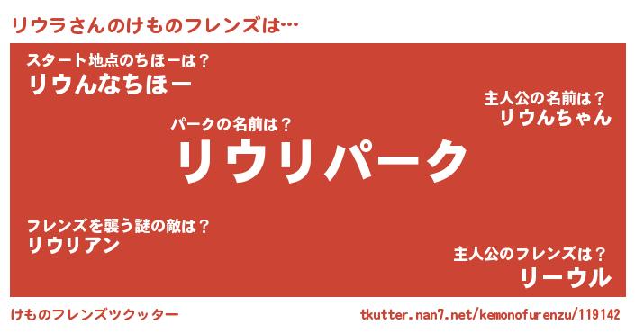 | 意味不明あだ名 | 『自称リウラ』『住所不定無職リウラ(2歳)』 |