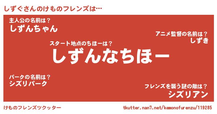 | 男性向けラノベタイトル風あだ名 | 『シズグスレイヤー』『魔弾の王としずぐ』 |