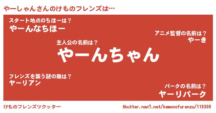 | 意味不明あだ名 | 『ペロリンやーしゃん』『自称やーしゃん』 |