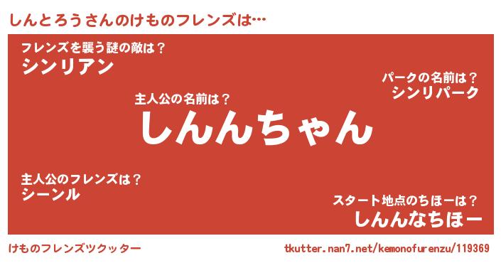 | 2回繰り返すあだ名 | 『しんしん』『ぶーぶー』『ししんん』 |