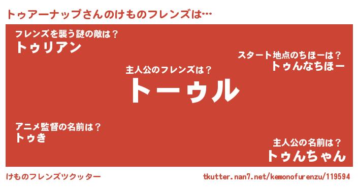 | ヘコむあだ名 | 『トゥアーナップ(震え声)』『トゥっふぃ~』 |