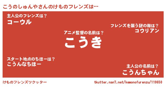 | ピコ太郎風あだ名 | 『コウ十郎』『ピココ郎』『ココ五郎』 |