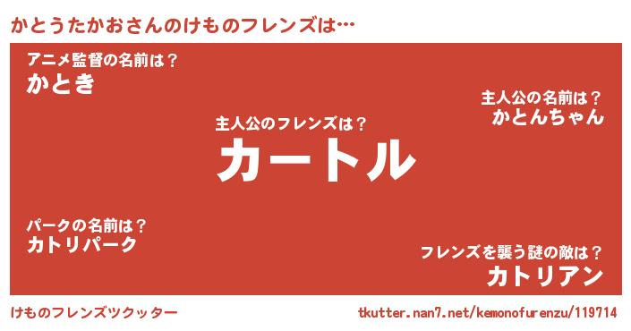 | ヒーロー風カッコイイあだ名 | 『ネオカトウタカオ』『仮面カトダー』 |