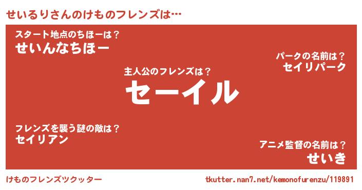 | 意味不明あだ名 | 『ヨモギ科せいるり属』『自称せいるり』 |