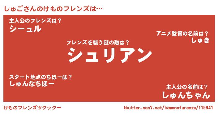 | 2回繰り返すあだ名 | 『ぶるぶる』『かーかー』『しゅしゅ』 |