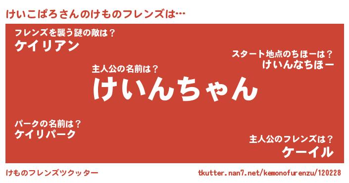 | 男性向けラノベタイトル風あだ名 | 『うちのけいこぱろが世界を掌握している!』 |
