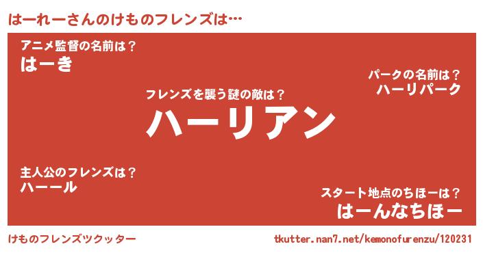 | 意味不明あだ名 | 『めかぶ科はーれー属』『自称はーれー』 |