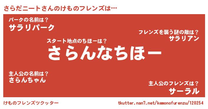 | 料理風あだ名 | 『さらだニートのカルパッチョ風』 |