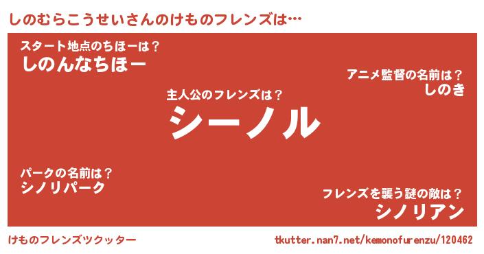 | 男性向けラノベタイトル風あだ名 | 『しのむらこうせいという概念が存在しない退屈な世界 』 |