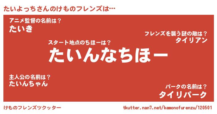 | 男性向けラノベタイトル風あだ名 | 『たいよっちに滅ぼされるだけの簡単なお仕事です』 |