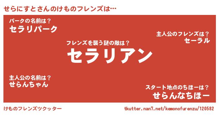 | ヒーロー風カッコイイあだ名 | 『仮面セラダー』『天空の使者せらにすと』 |