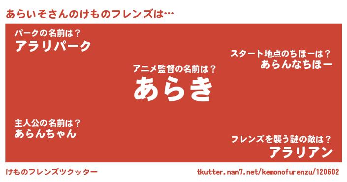 | 意味不明あだ名 | 『とにかく怪しいあらいそ』 |