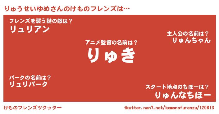 | 意味不明あだ名 | 『とにかく怪しいりゅうせいゆめ』 |