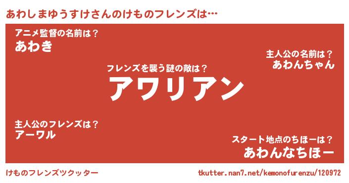 | 肩書あだ名 | 『あわしまゆうすけ少佐』 |