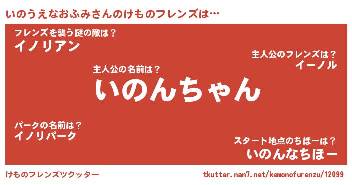| 2回繰り返すあだ名 | 『いのいの』『ぽろぽろ』『いいのの』 |