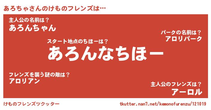 | ポケモン風あだ名 | 『アロチダネ』『アロゴンZ』 |