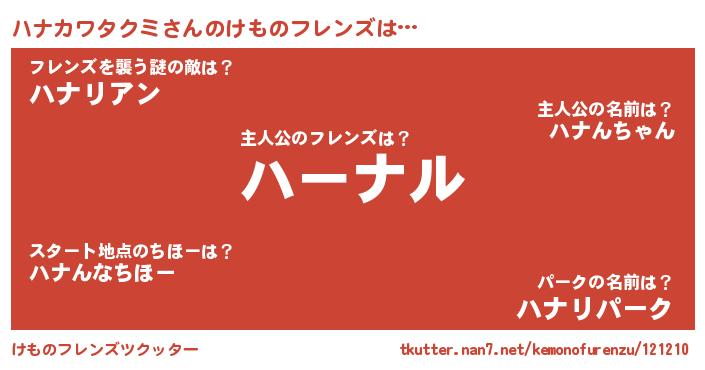 | 意味不明あだ名 | 『永久保存ハナカワタクミ』 |