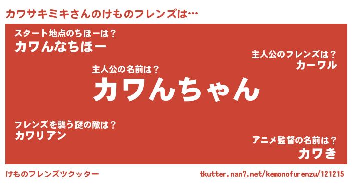 | ファンタジー風あだ名 | 『カワフェル』『ヴァルカワーナ』 |