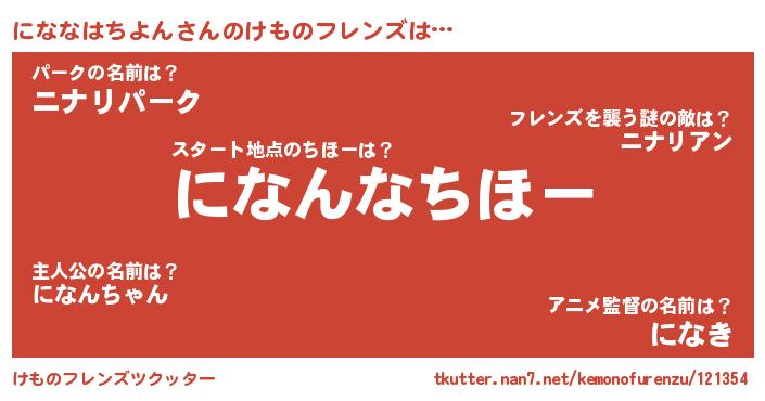 | 欧米人風あだ名 | 『にななはちよんクリステル』 |
