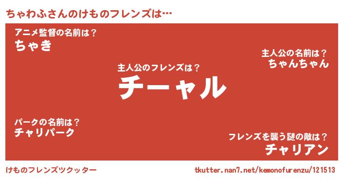 | 男性向けラノベタイトル風あだ名 | 『チャワフスレイヤー』『緋弾のチャワフ』 |