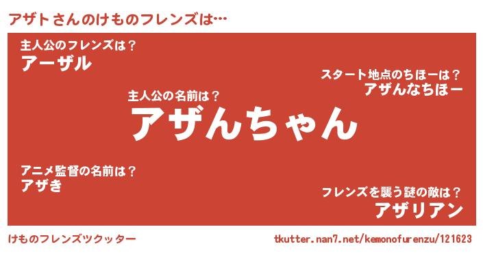 | ヘコむあだ名 | 『アザにゅー』『アザト(震え声)』 |