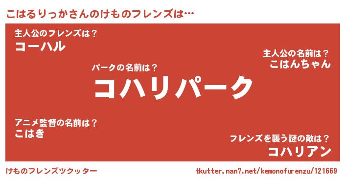 | ヒーロー風カッコイイあだ名 | 『最強戦士コハルリッカ』『幻影騎士コハ』 |