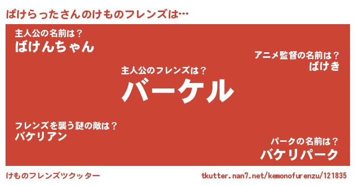 | 意味不明あだ名 | 『住所不定無職ばけらった(3歳)』 |