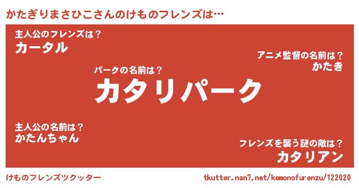 | 肩書あだ名 | 『かたぎりまさひこ総統』 |